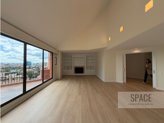 Pesos ColombianosCód. MM 9896170 Apartamento de 260,8 m² en dos niveles, con 3 alcobas, 3 baños incluido el social, cuarto y baño de servicio, sala con chimenea y terraza, cocina funcional, estudio en segundo nivel con terraza, alcoba principal y baño principal con terraza, calentador eléctrico y planta eléctrica total, además de 3 parqueaderos independientes y depósito exclusivo.