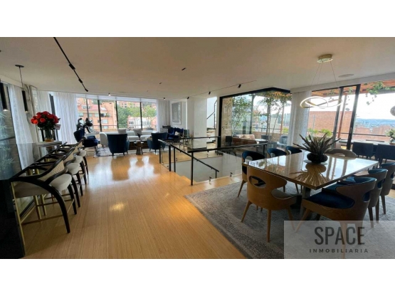 Pesos ColombianosCod. MM 9166990 Se Vende Apartamento con vista exterior esquinero remodelado, tiene terraza exclusiva con BBQ y sala comedor de 72,38m2, vista 360 grados, ascensor directo al apartamento y puerta de seguridad, con área construida de 336,48m2 y privada de 263,08m2, cuenta con 4 habitaciones, 5 baños, estudio o family, cuarto y baño de servicio, zona de lavandería, 3 parqueaderos y depósito. El edificio cuenta con caldera, planta eléctrica, vigilancia.